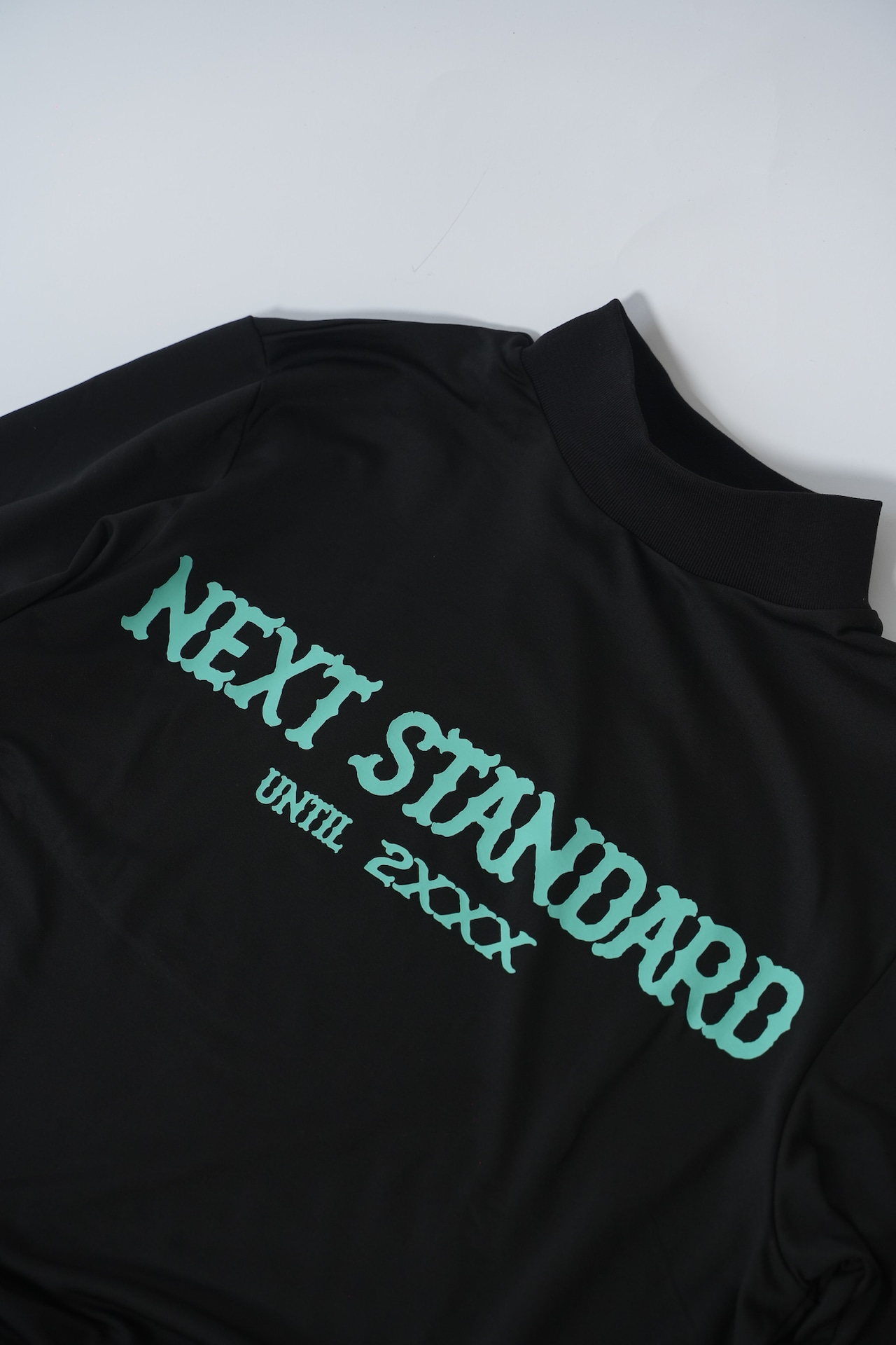 モックネックシャツ ロングスリーブ ブラック×ターコイズ